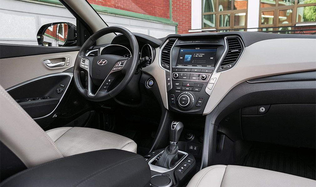 Салон Koleos отделан со вкусом и вызывает вполне премиальные ассоциации: мягкая кожа, приятный на ощупь пластик, удобная усеченная снизу «баранка» и абсолютно понятное расположение основных клавиш и рычагов. На этом фоне очень удивляет набор стеклоподъемников без автоматического режима, хотя при этом в машине есть, например, вентиляция передних сидений или обогрев руля. Впрочем, у Santa Fe в старших комплектациях есть не только эти опции, но и кое-что еще. Например, камеры кругового обзора, системы контроля разметки и слепых зон, которые Renault для своего флагмана не предлагает.